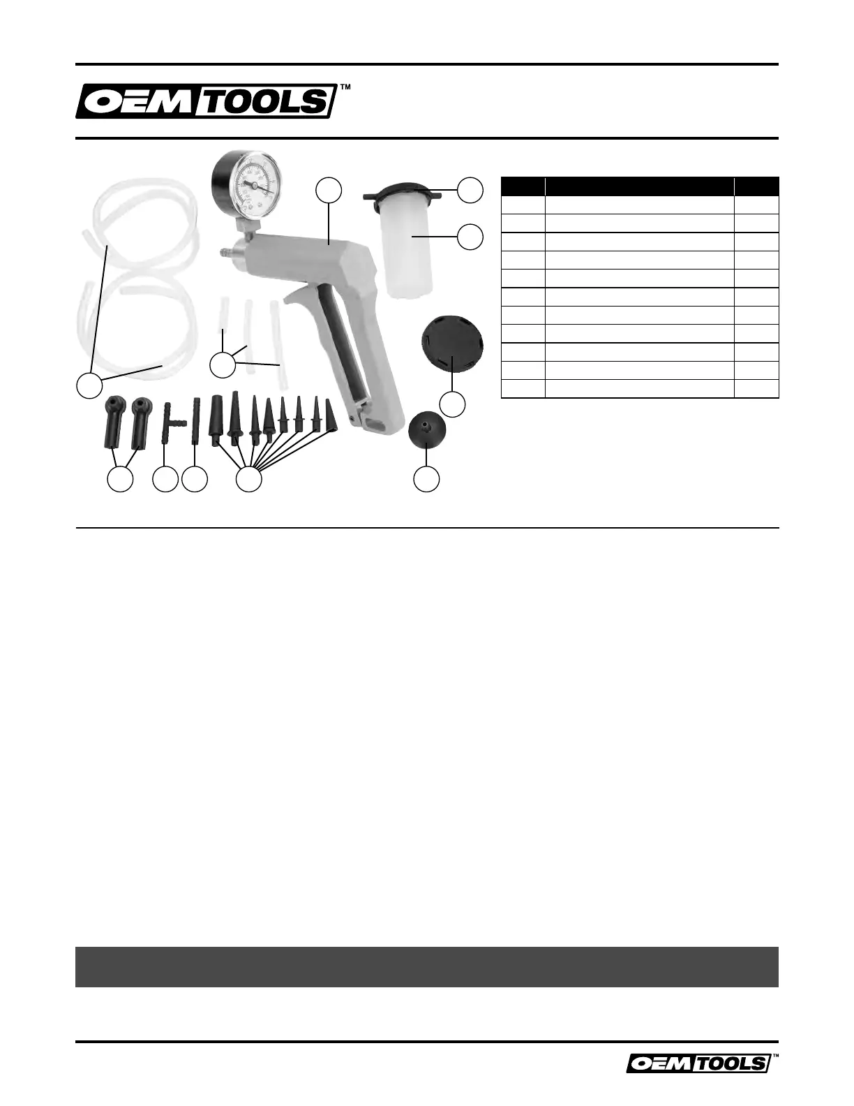 OEMTOOLS™ does not provide warranty for products labeled other than OEM® or OEMTOOLS™. OEMTOOLS™ will