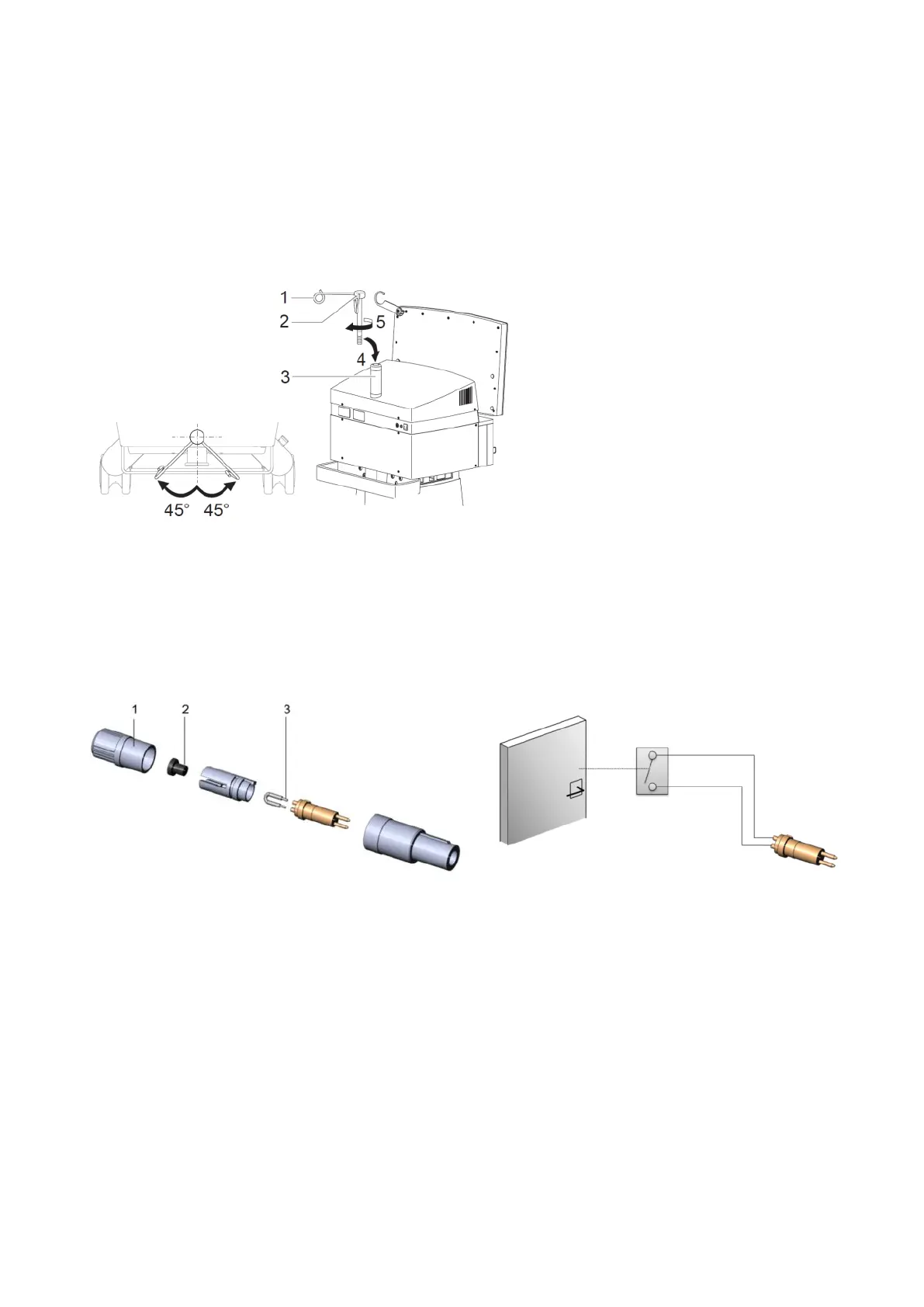 Use an Allen key to loosen the screw (2), position infusion pole at a 45-degree angle as illustrated above and secure