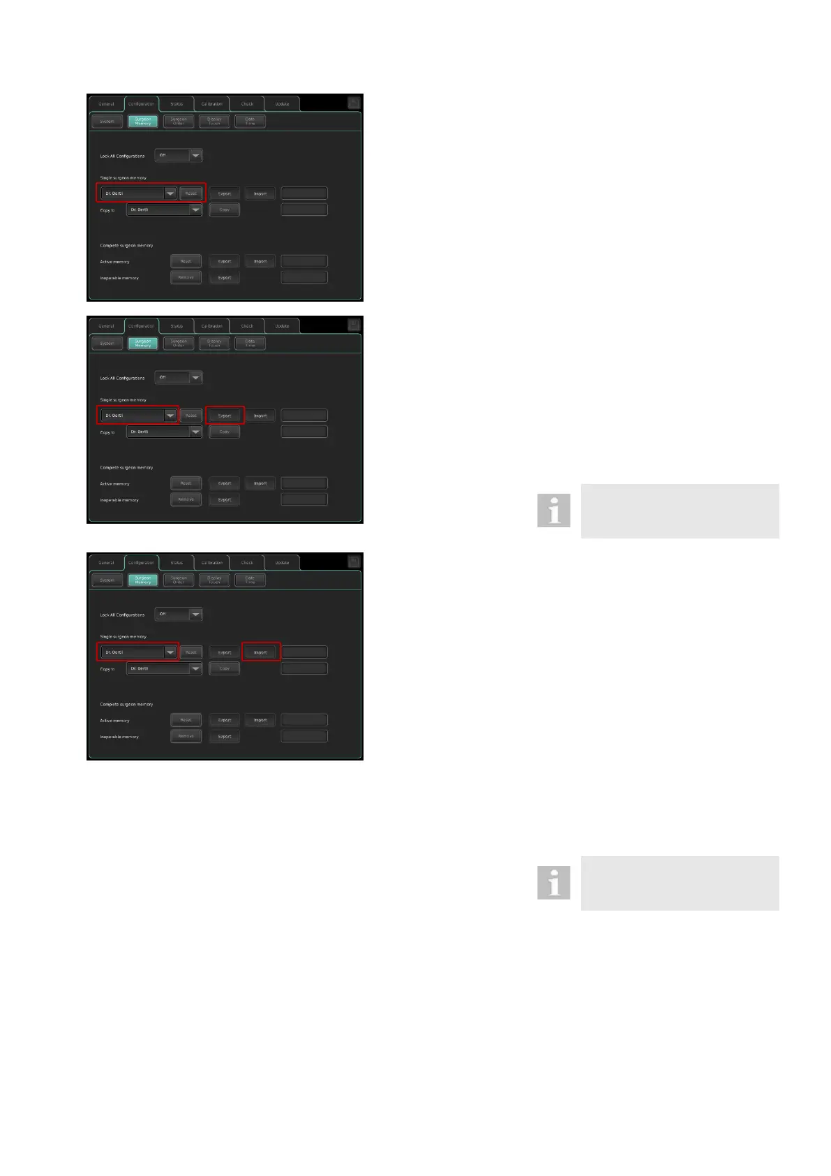 Import of single surgeon memory from a