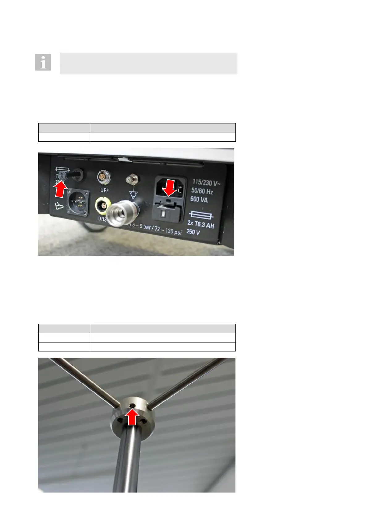 Following the installation of the spare fuses: Check in accordance with 6.2 if the correct voltage has been selected.