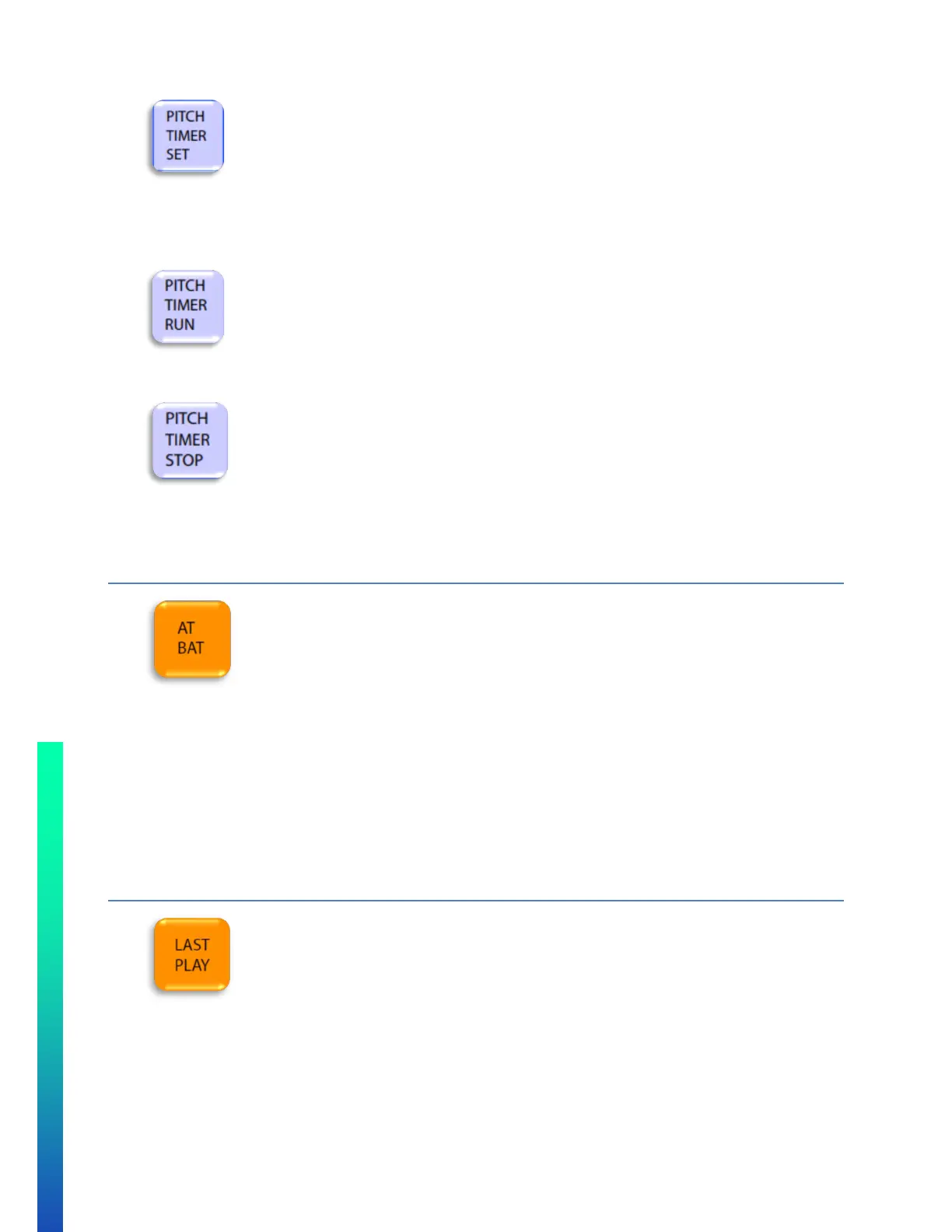 o Press the PITCH TIMER SET button to toggle through the set pitch timers.