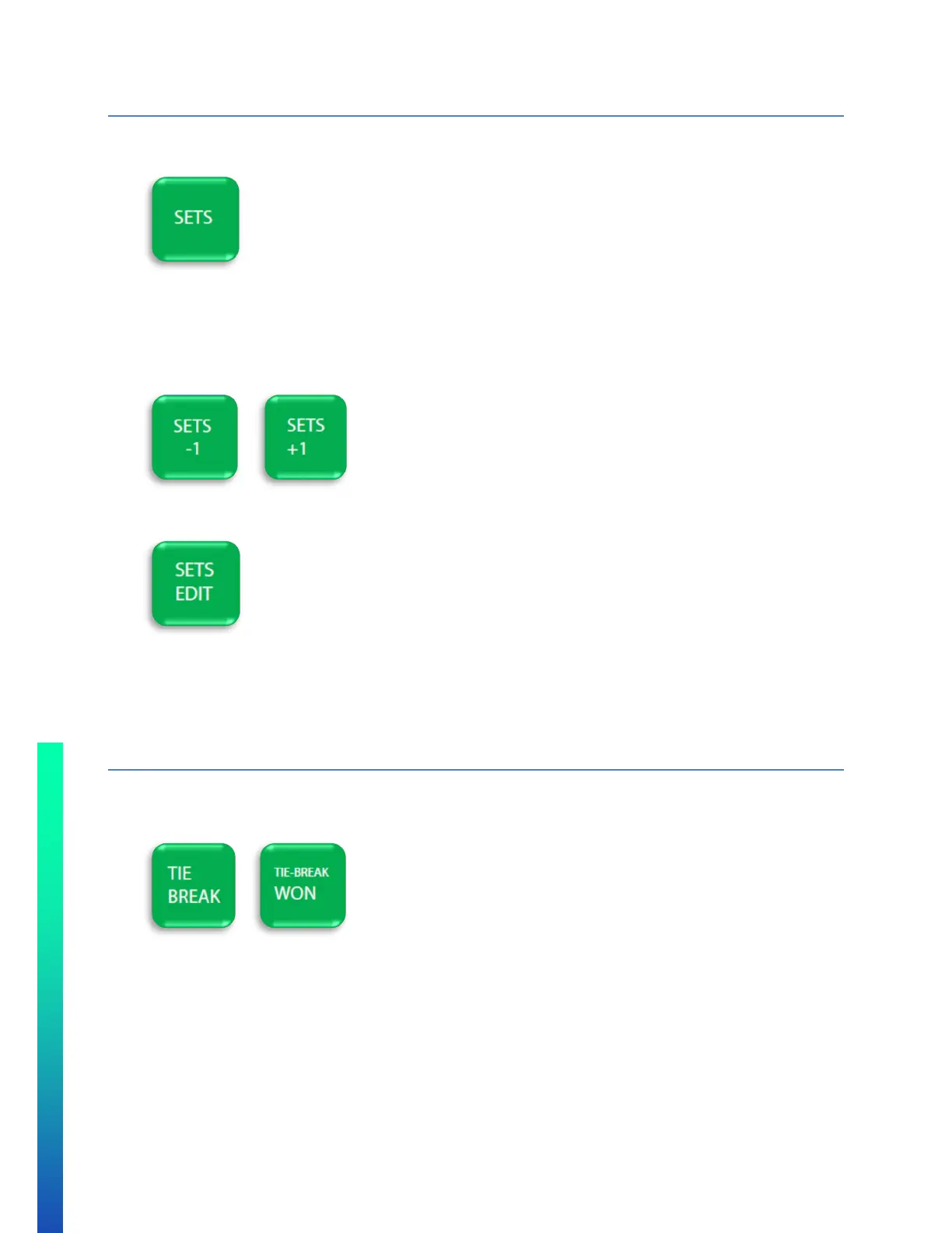o Press SETS +1 or SETS -1 to toggle between the 5 sets.