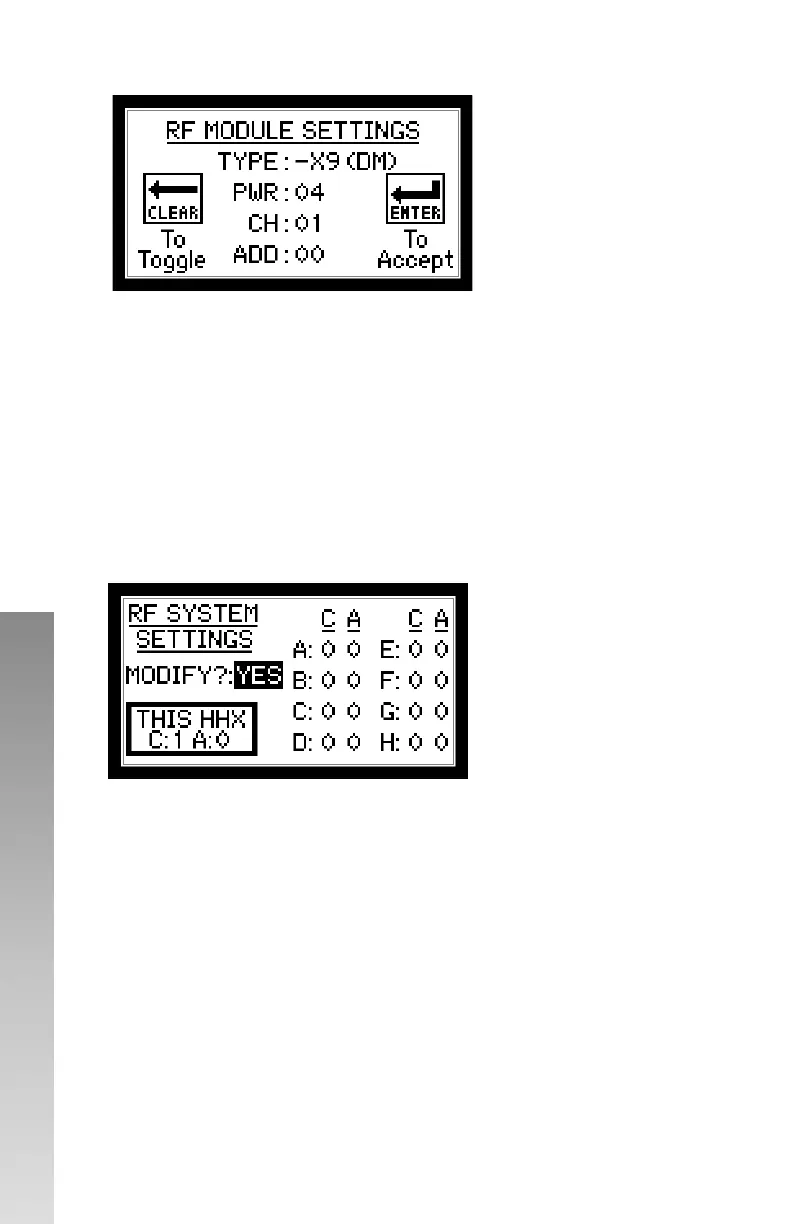 • Select if YES the RF SYSTEM SETTINGS need to be modified. If NO then