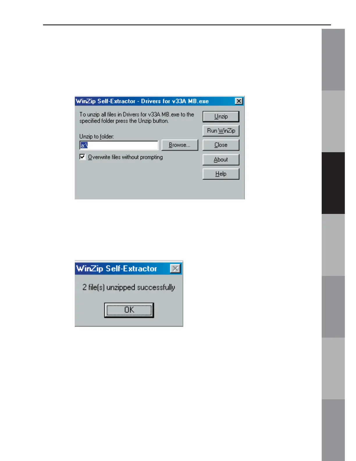 8. Click the “Unzip” button. The message, “2 fi les successfully