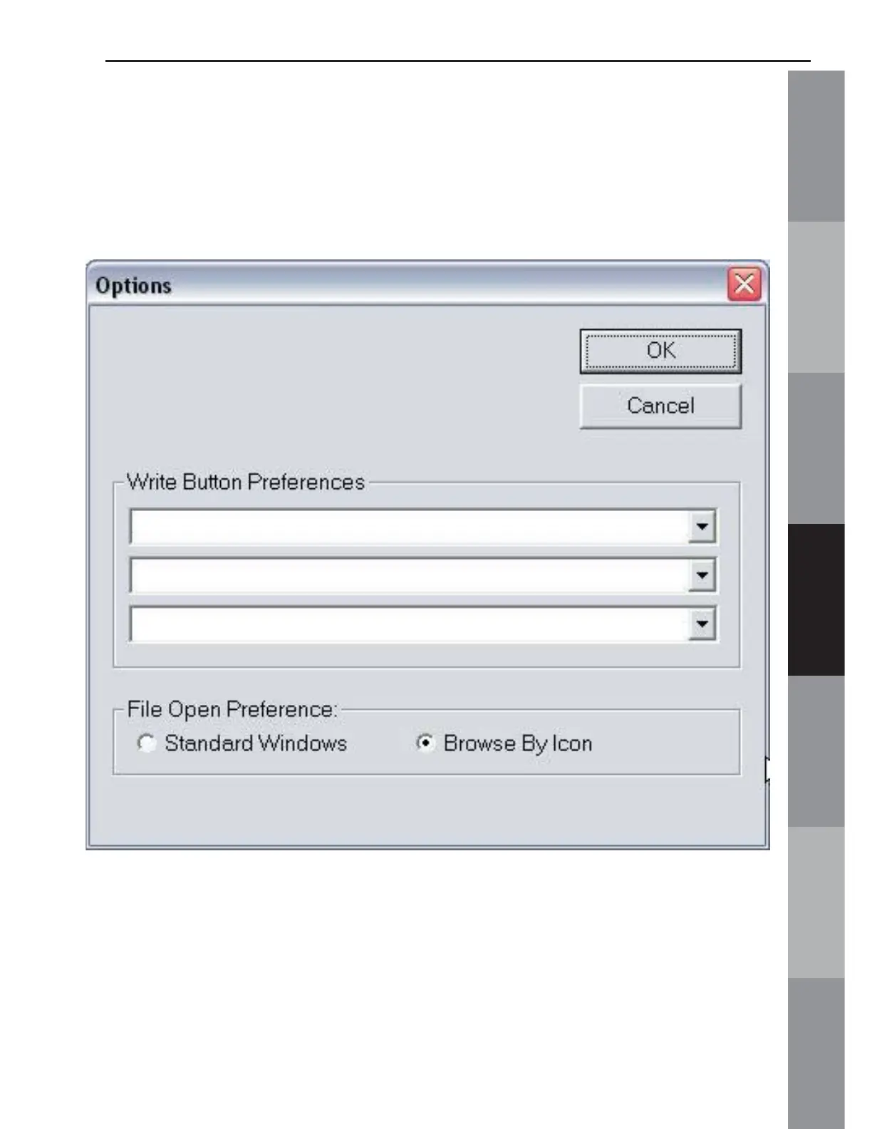 Use the drop down arrow in the Write Button Preferences area to
