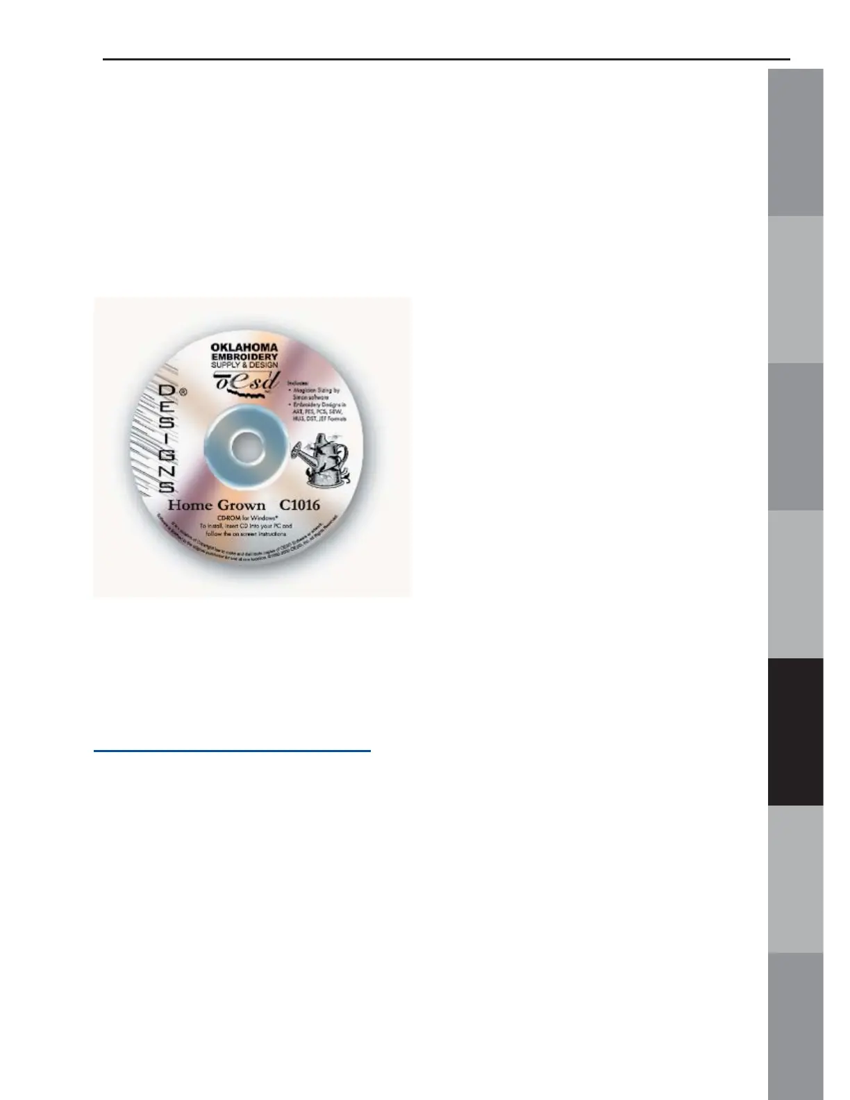 • Designs can also be Read from the computer’s hard drive and from a fl oppy disk.