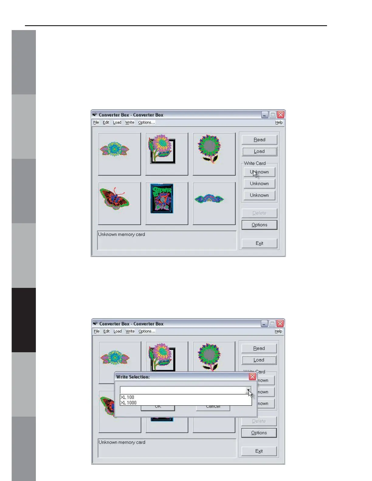 Warning: Some embroidery design cards can be erased or overwritten. Always remove any