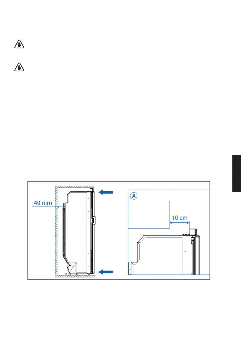 2. Bringen Sie das Gerät teilweise im Schrank unter, so dass an der Oberseite des Produkts ein Freiraum von 10 cm frei
