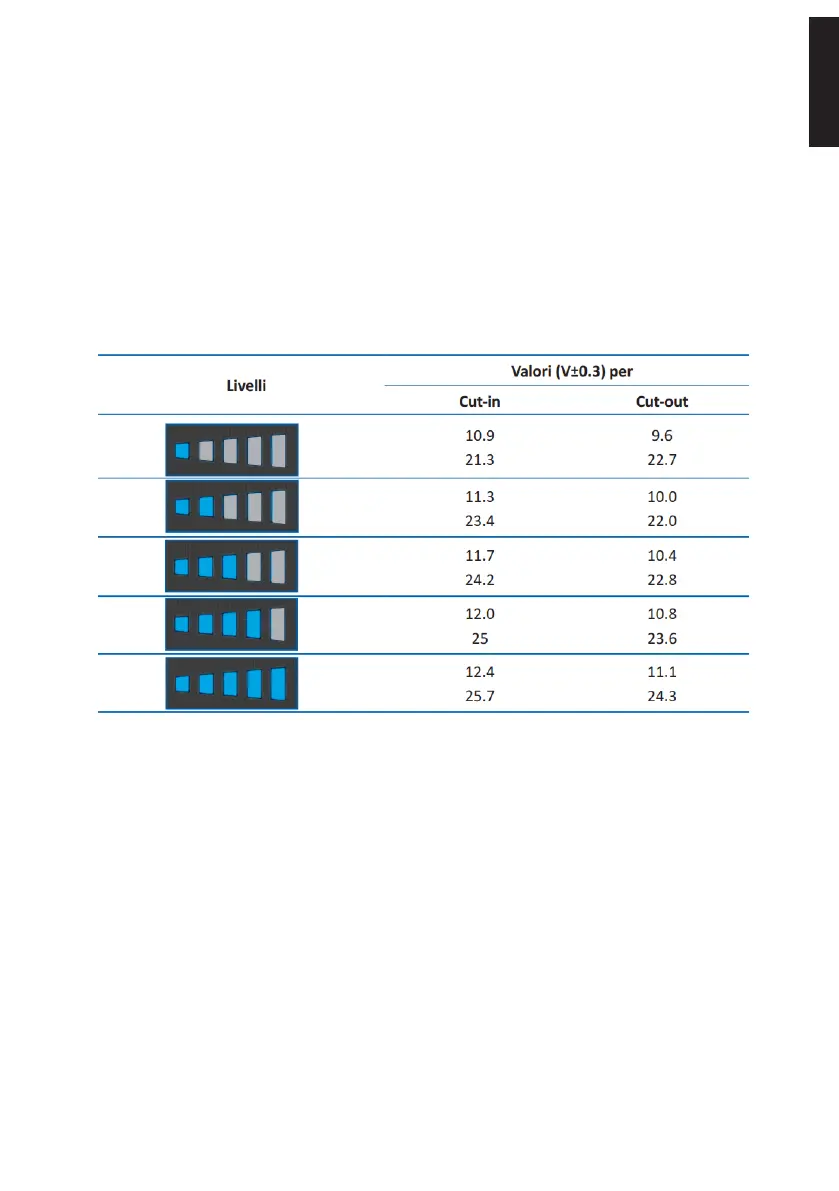 Il livello di salva batteria definisce la minima tensione sotto la quale viene interrotta l’erogazione di corrente al prodotto.