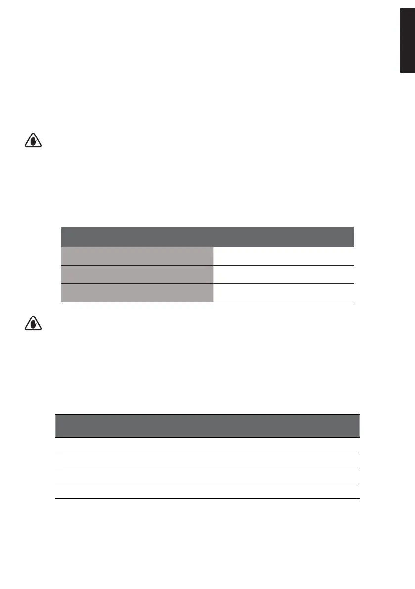 Usare sempre cavi con un’adeguata sezione, di seguito una tabella con le sezioni minime: