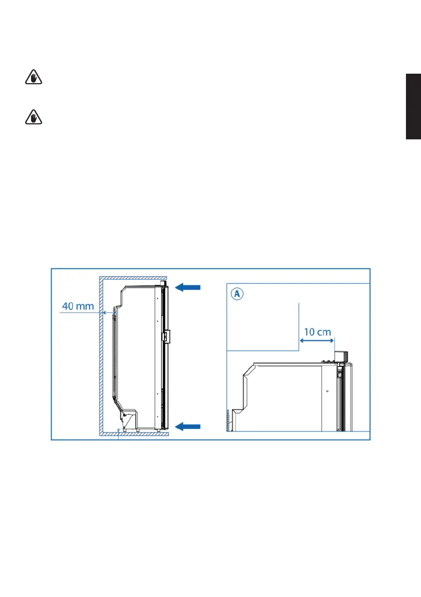 2. Place the product partially in the cabinet, leaving 10 cm of space at the top (see detail A);