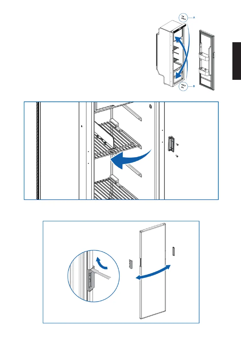 To change the direction the door opens, proceed as indicated: