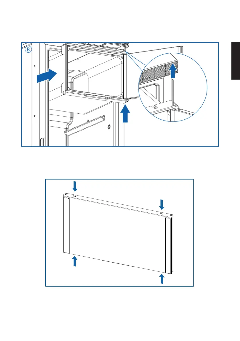 9. Partially remove the freezer compartment and remove the door by pulling out its pin, using a slight pressure from the lower