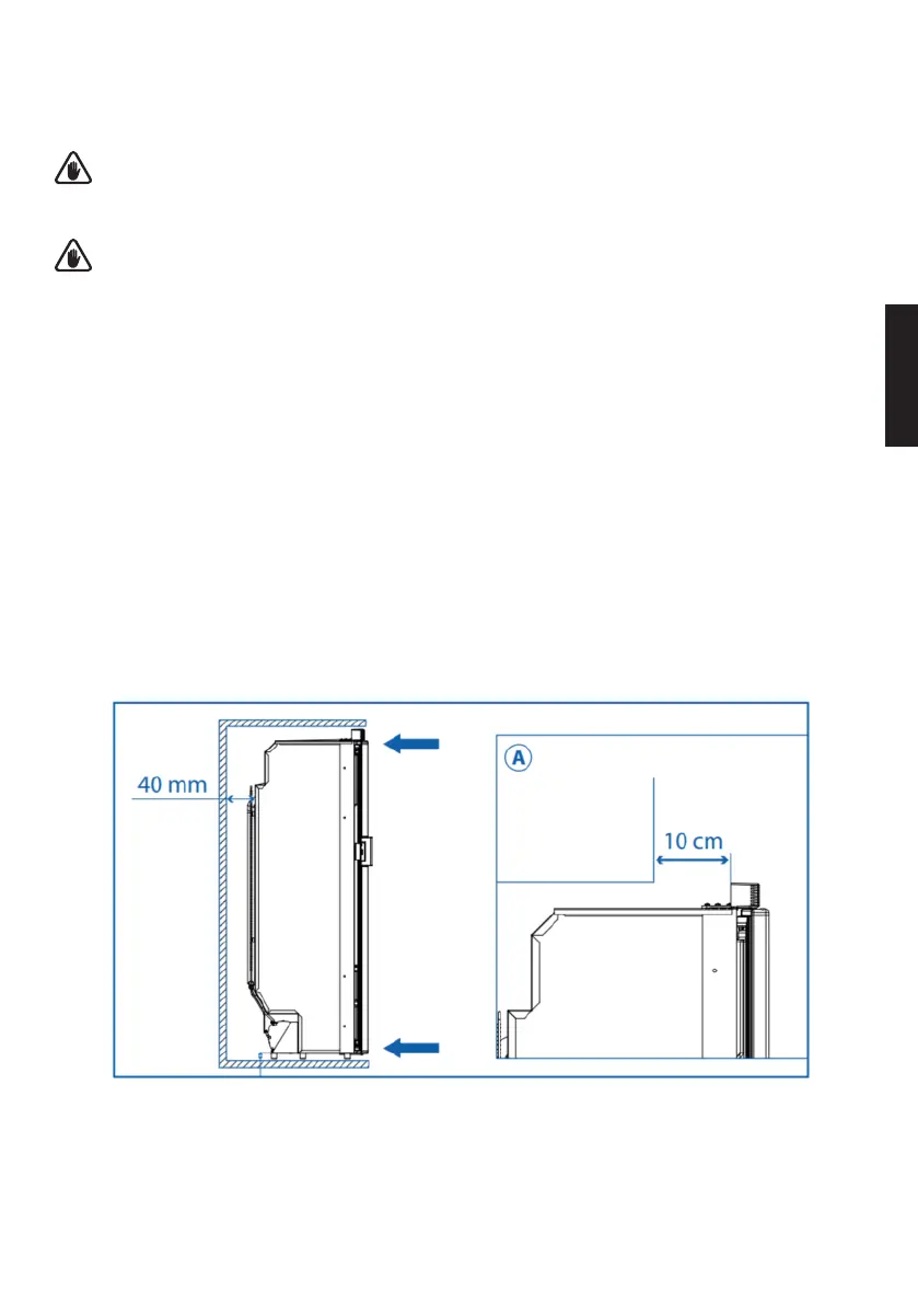1. Instale el producto en un armario estable, respetando los espacios de ventilación indicados en la ilustración;
