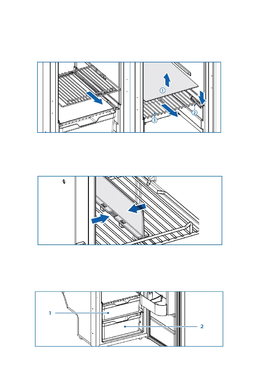 Pour organiser le compartiment réfrigérateur en fonction de ses propres besoins, déplacer les grilles comme indiqué sur la
