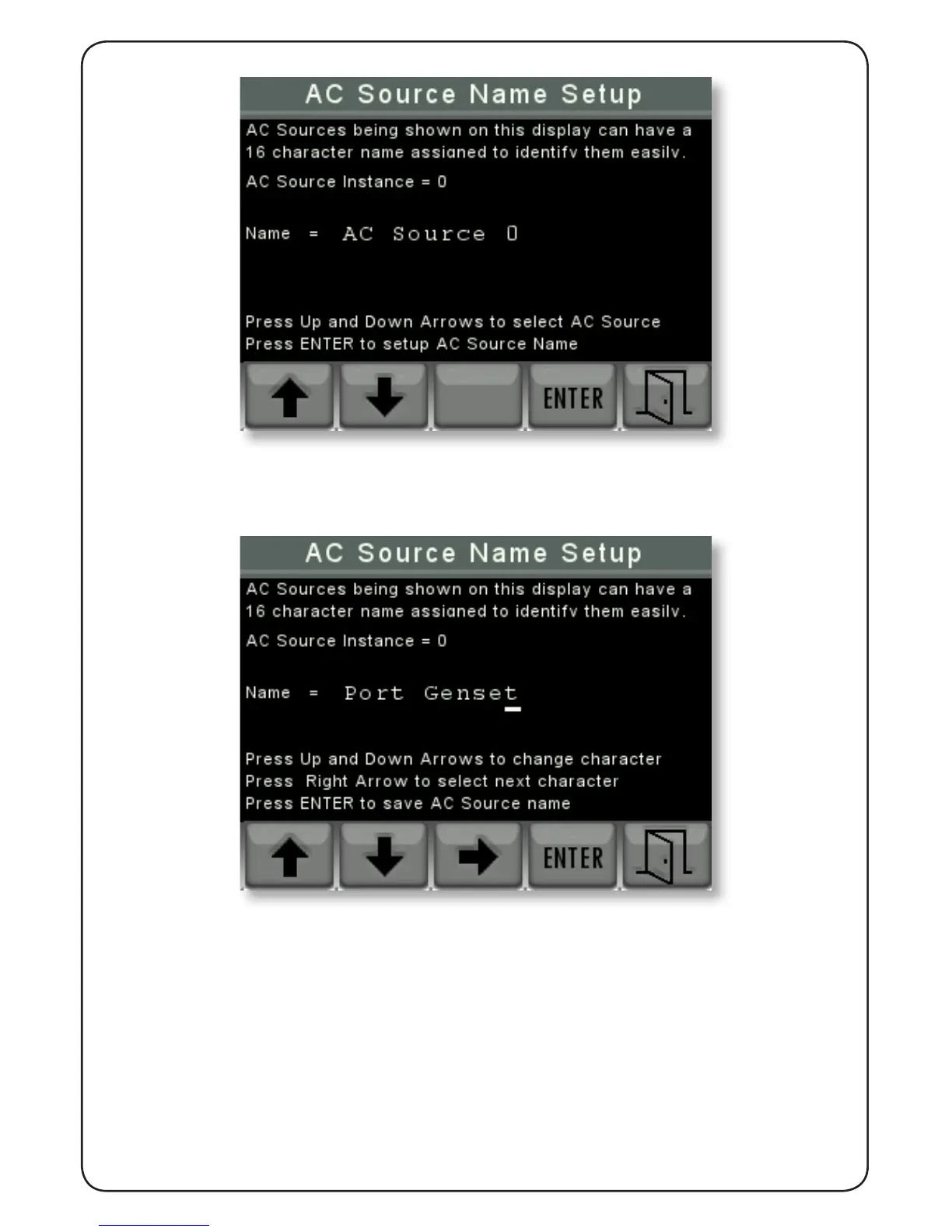 Firstly, by pressing the up arrow and down arrow buttons select the AC Source instance to be