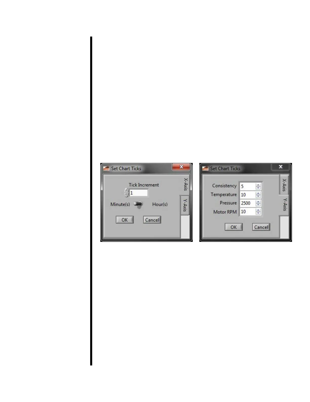 Y-Axis: Allows the user to set data points based on increments of: