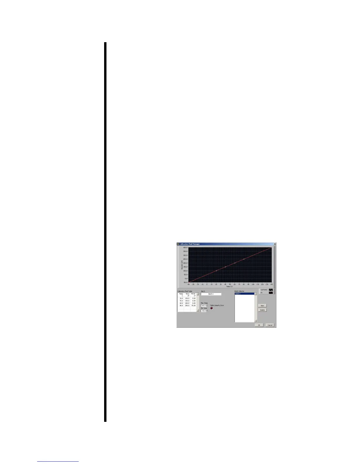 3. In the “Calibration Fluid Table”, enter at least two Temperature/