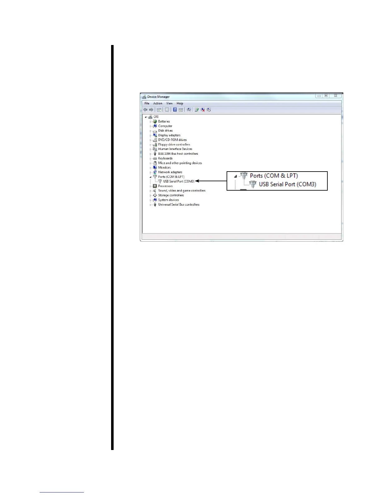port listed in Device Manager.