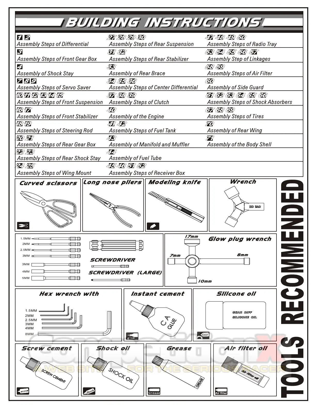 Ofna Racing HYPER 8.5 RTR - BUILDING INSTRUCTIONS; Assembly Steps of Differential; Assembly Steps of Front Gear Box; Assembly of Shock Stay