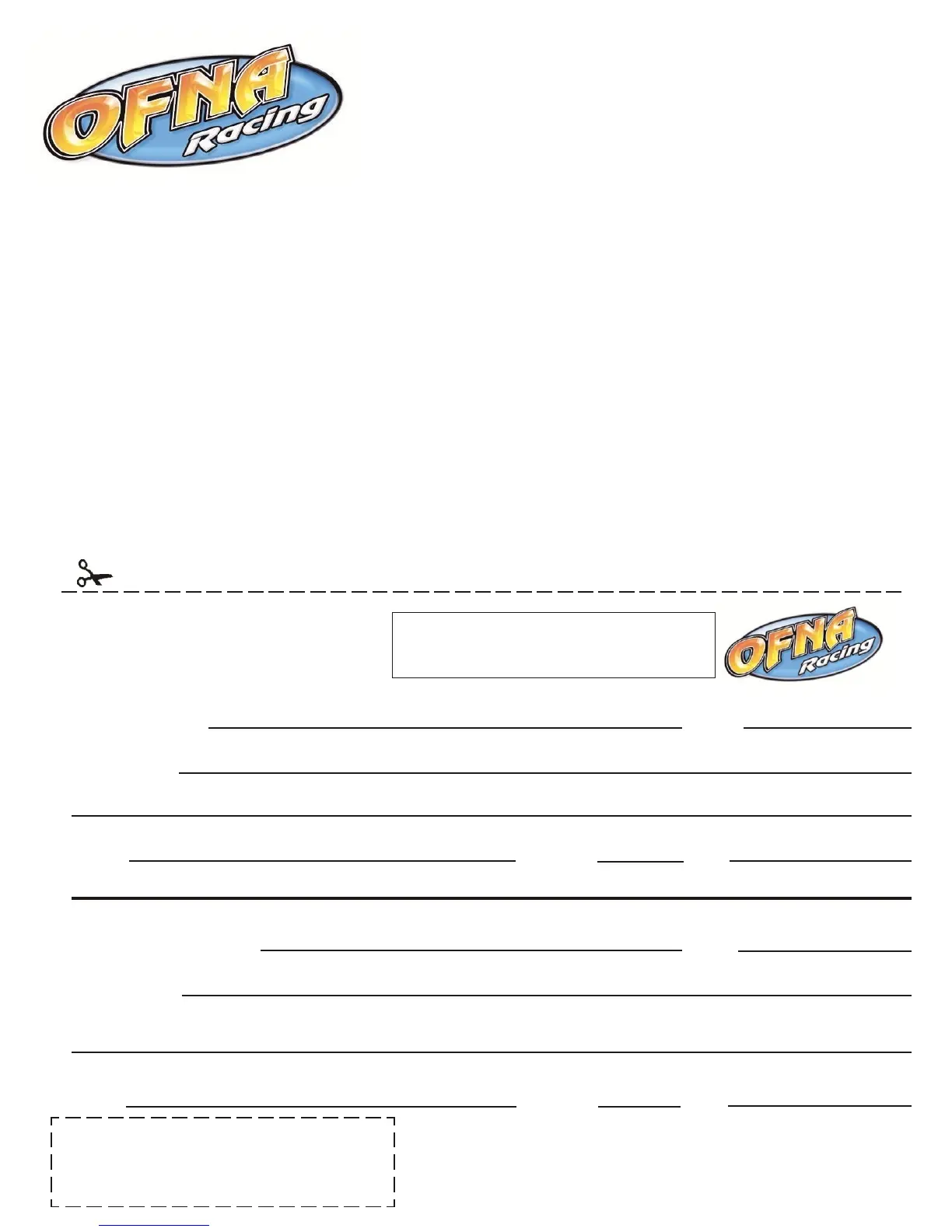 OFNA Racing congratulates you on your purchase of our fine OFNA Product. With proper maintenance and han-