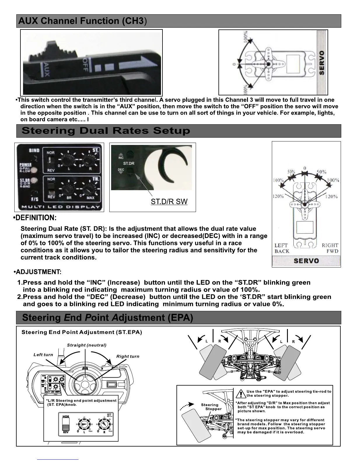 Ofna Racing Hyper SS - AUX Channel Function (CH3); Steering Dual Rates Setup; Steering End Point Adjustment (EPA)