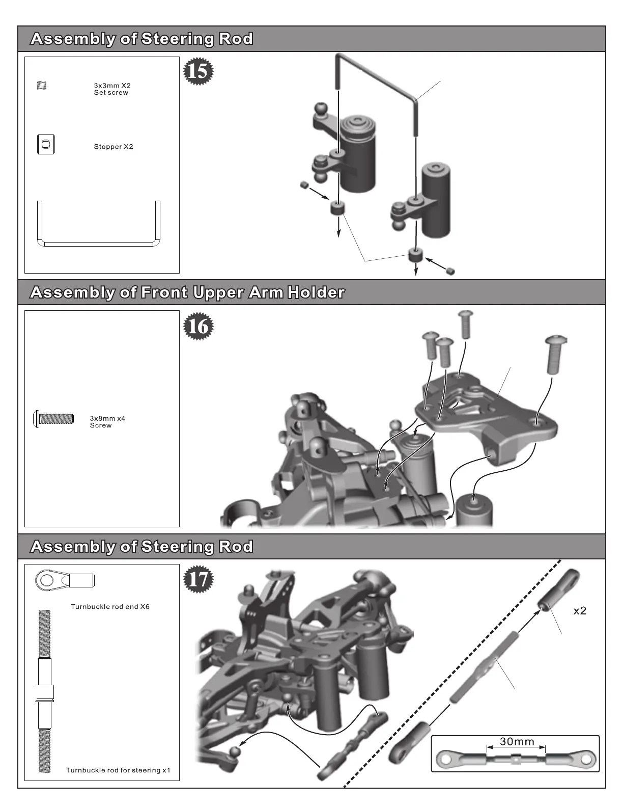 Ofna Racing HYPER10-TT - Steering Linkage Assembly; Steering Rod System Assembly; Front Upper Arm Holder Installation; Steering Rod System Completion
