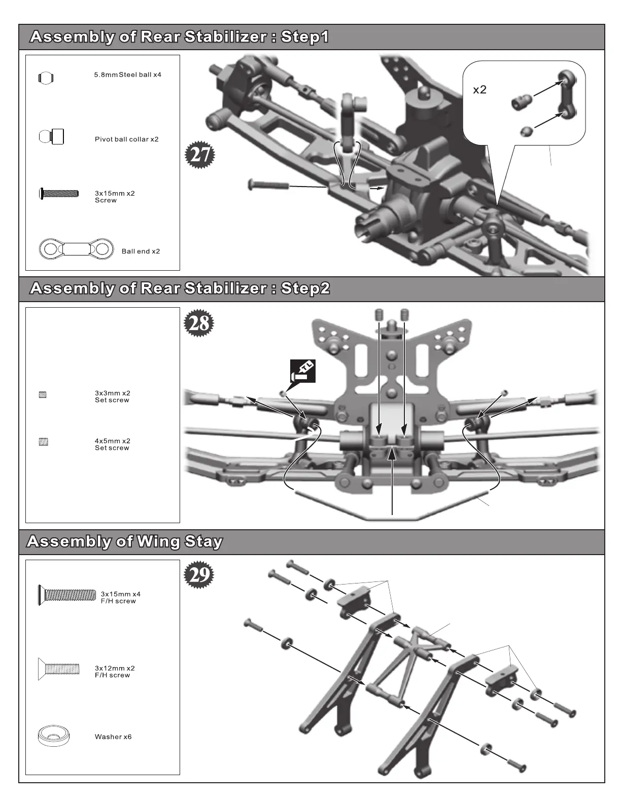 Ofna Racing HYPER10-TT - Rear Stabilizer and Wing Stay Assembly; Rear Stabilizer Installation (Steps 1-2); Wing Stay Attachment