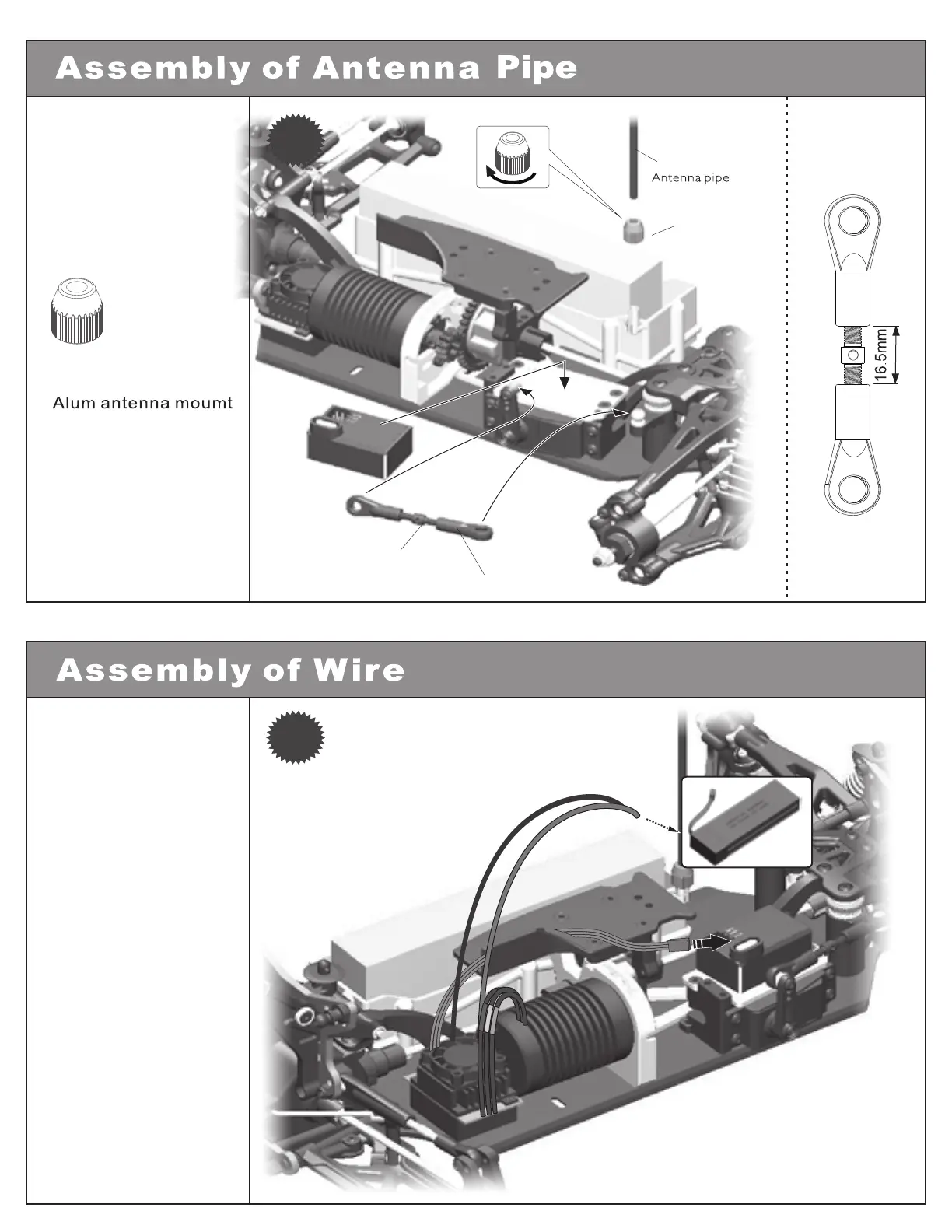 Ofna Racing HYPER10-TT - Electric Version Antenna and Wiring; Antenna Pipe and Mount Installation; Electrical Wire Routing and Connection