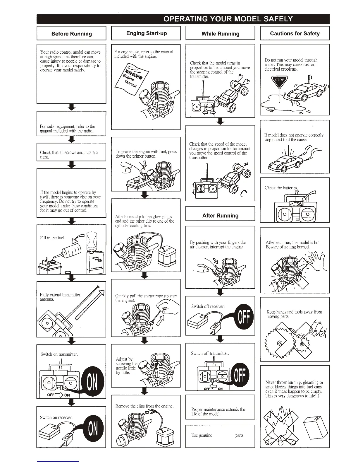 Ofna Racing Hyper7 - Operating Your Model Safely; Before Running Checks; Engine Start-up Procedure; While Running Guidelines