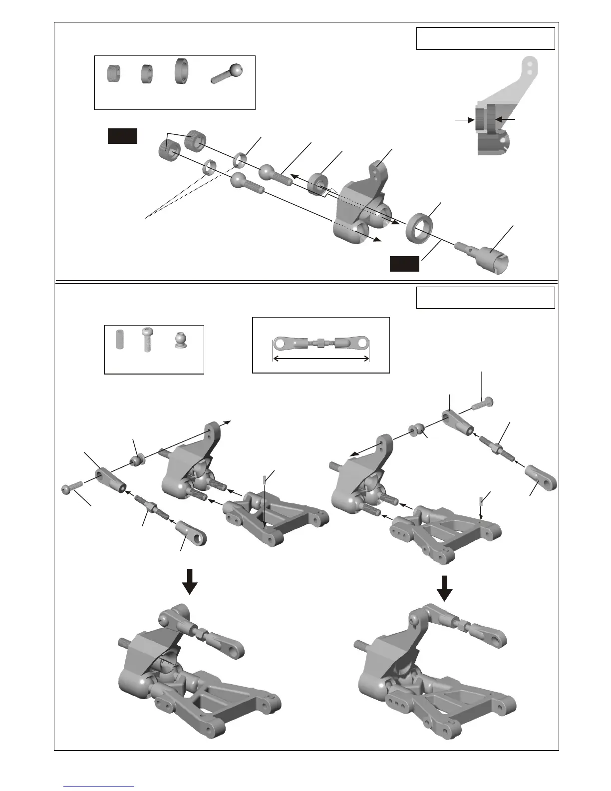 Ofna Racing LD3 - ASSEMBLY OF THE REAR WHEEL HUB; ASSEMBLY OF THE REAR SUSPENSION ARMS