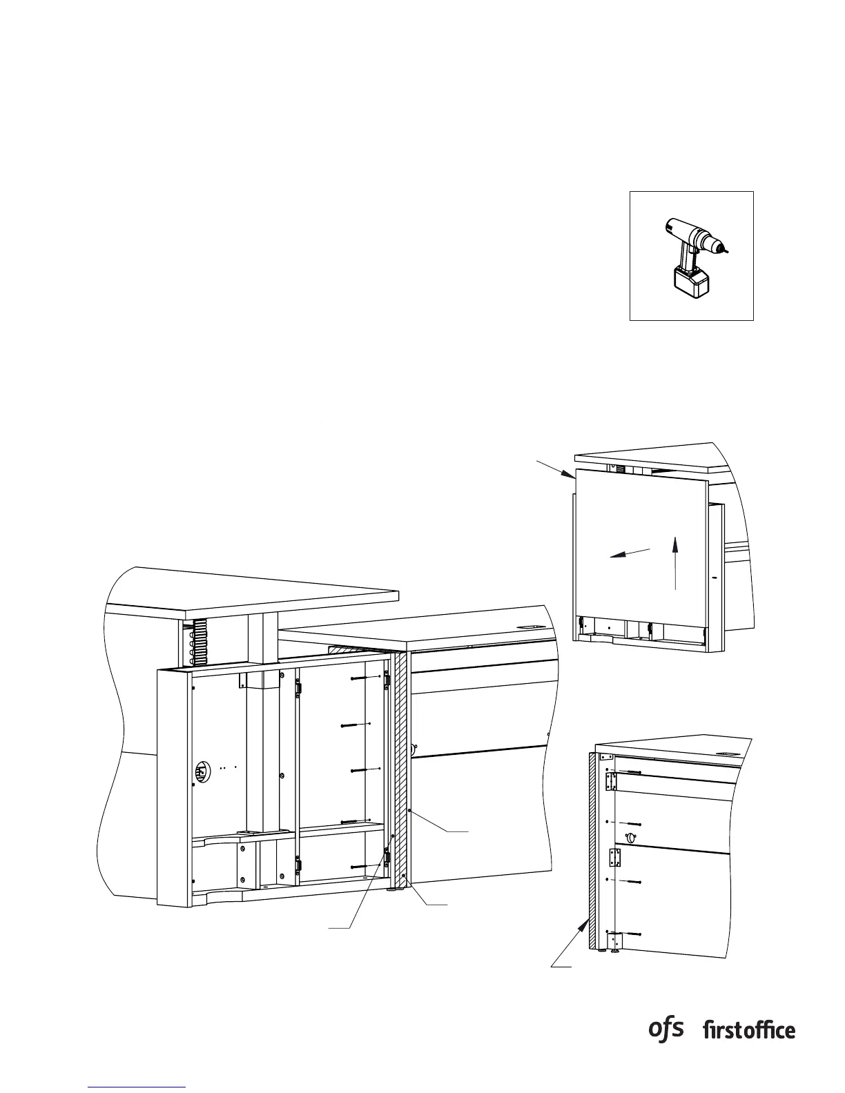 most factory installed screws on the connecting panel of the desk, as shown in the view above. The inner