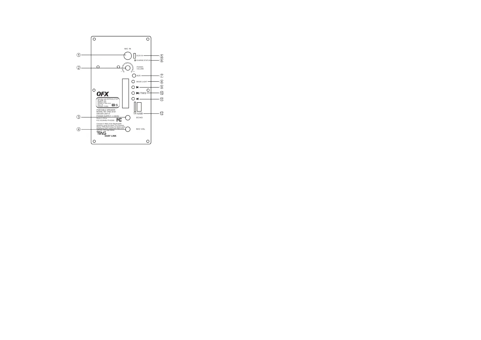 4. MIC.VOL: Contrôle du volume du microphone Interface 5.DC (5V)