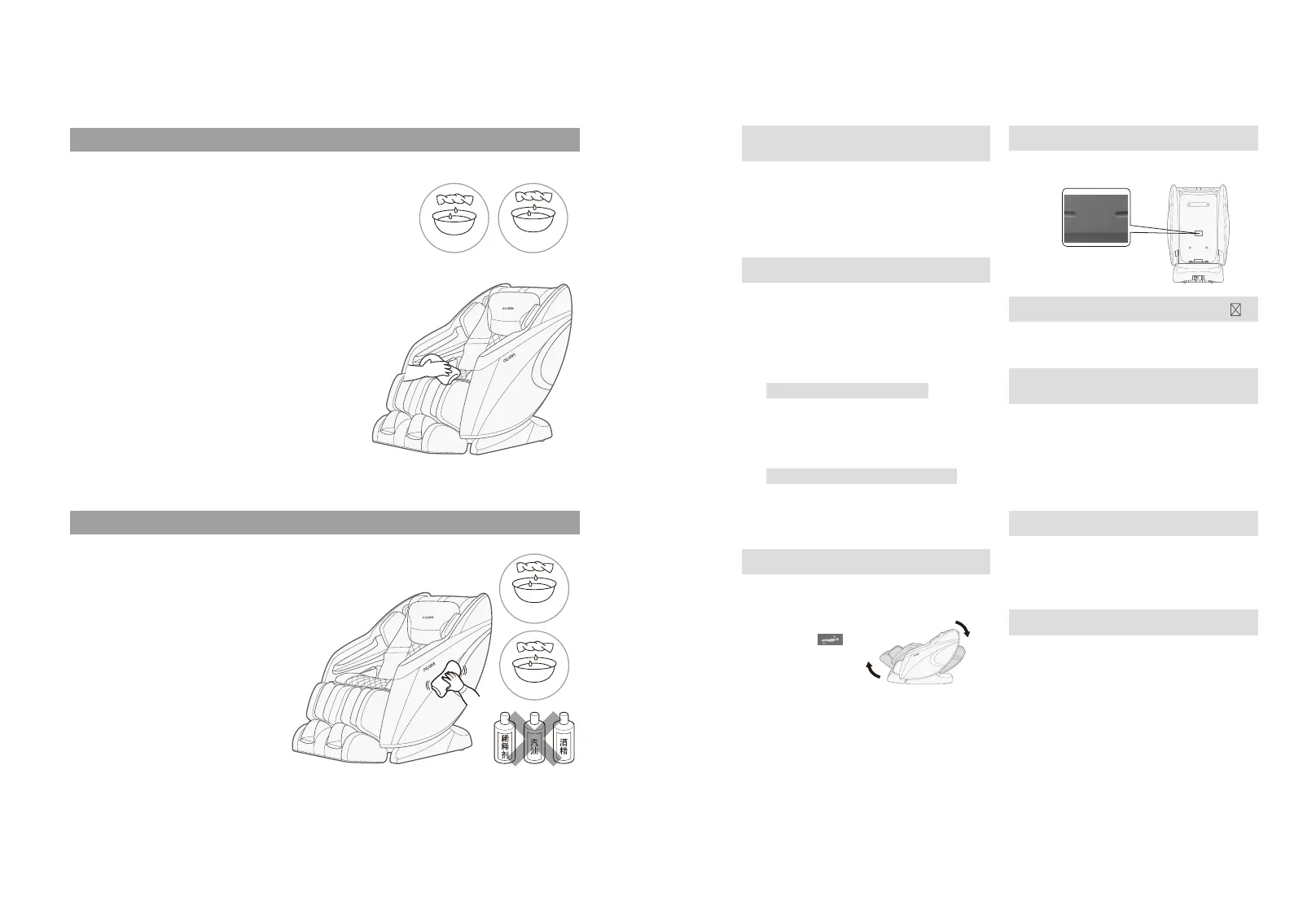 用户同时使用上半身按摩和小腿 • 脚部按摩时,可能