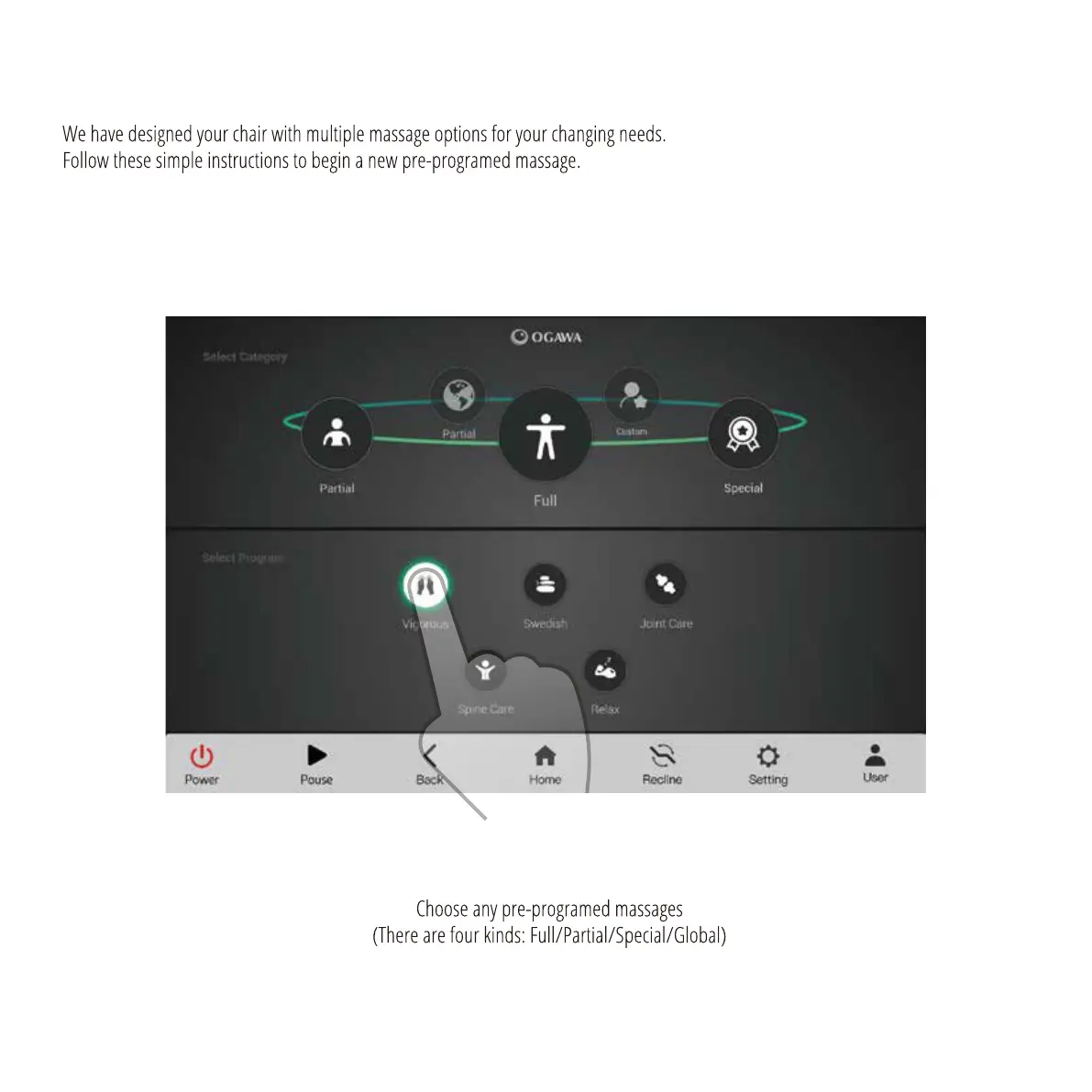Ogawa Master Drive - Pre-Programmed Massage Selection