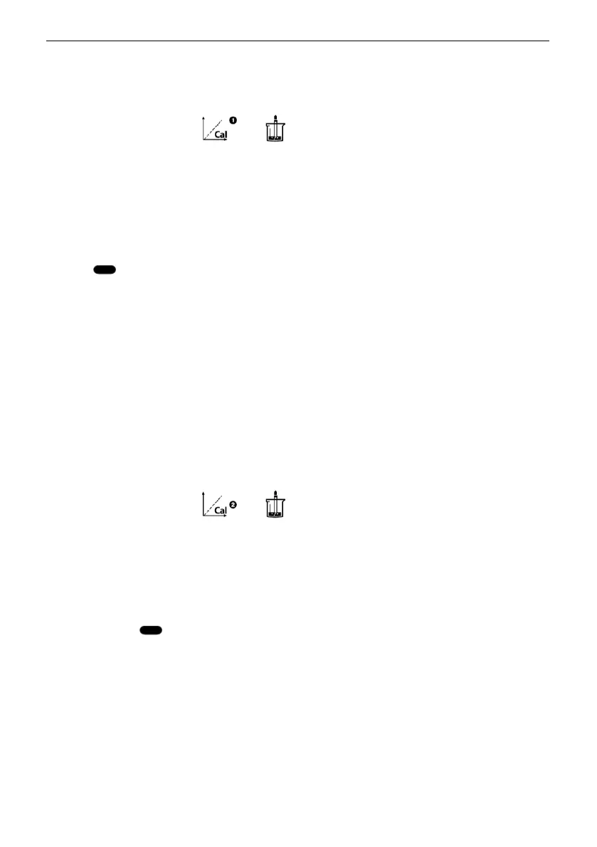 When the meter is in pH measurement mode, place the pH electrode in a calibration
