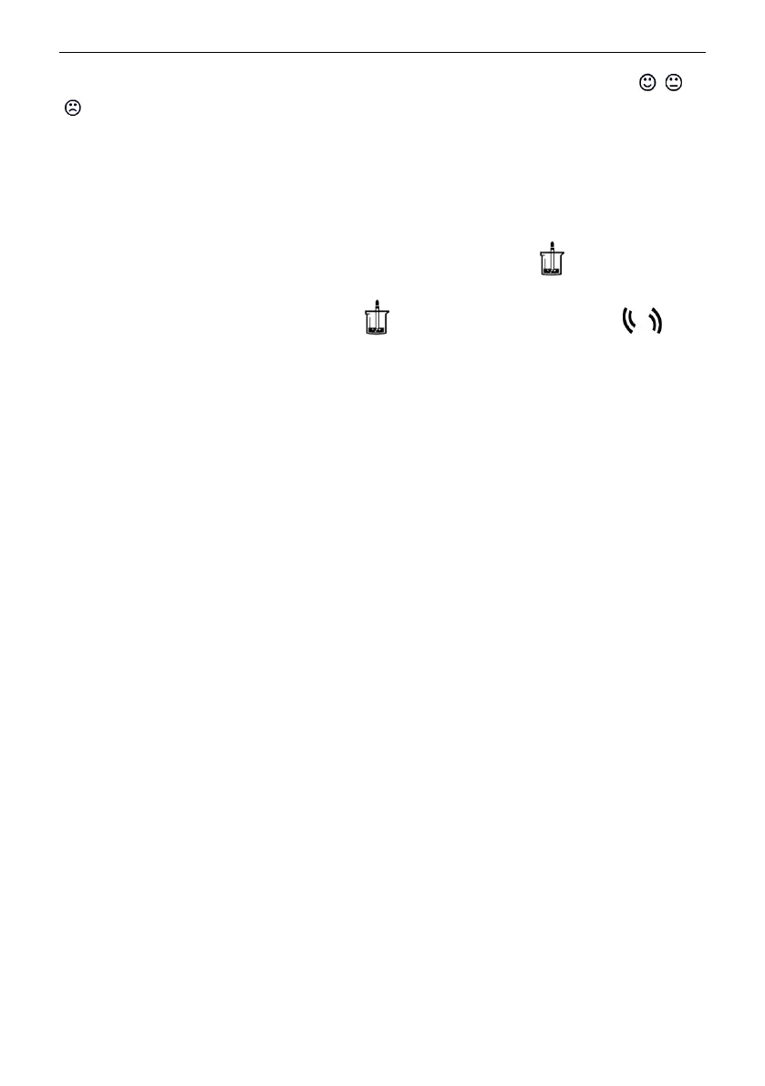 After all the calibrations are finished, the meter will display electrode condition ( , ,