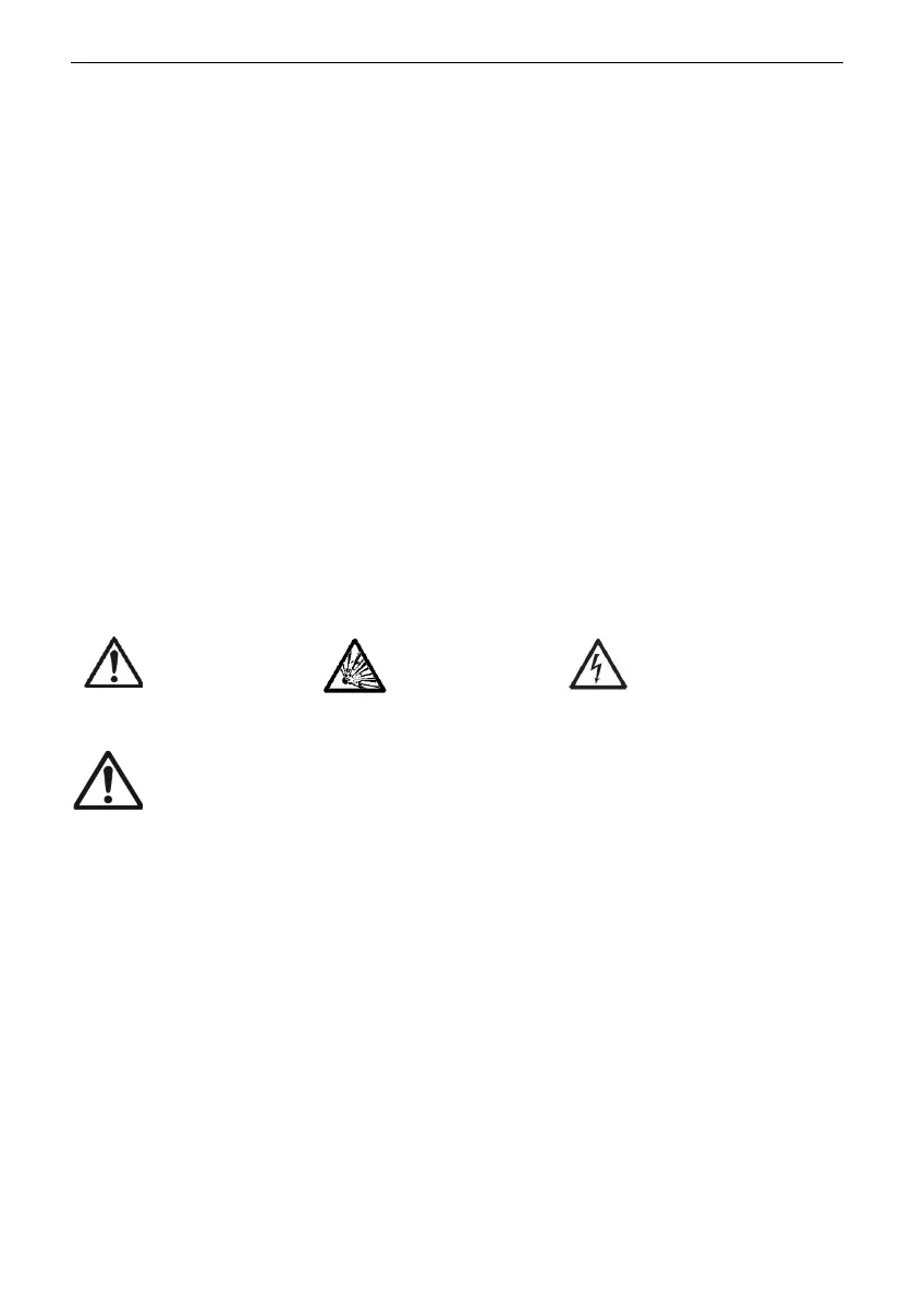 Safety notes are marked with signal words and warning symbols. These show safety