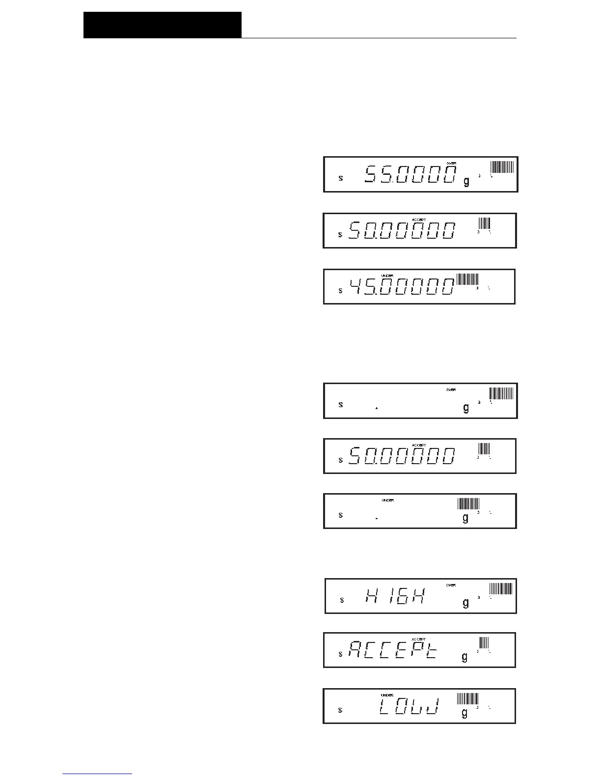 NOTE: Samples of the displays for check weighing are shown as follows using a