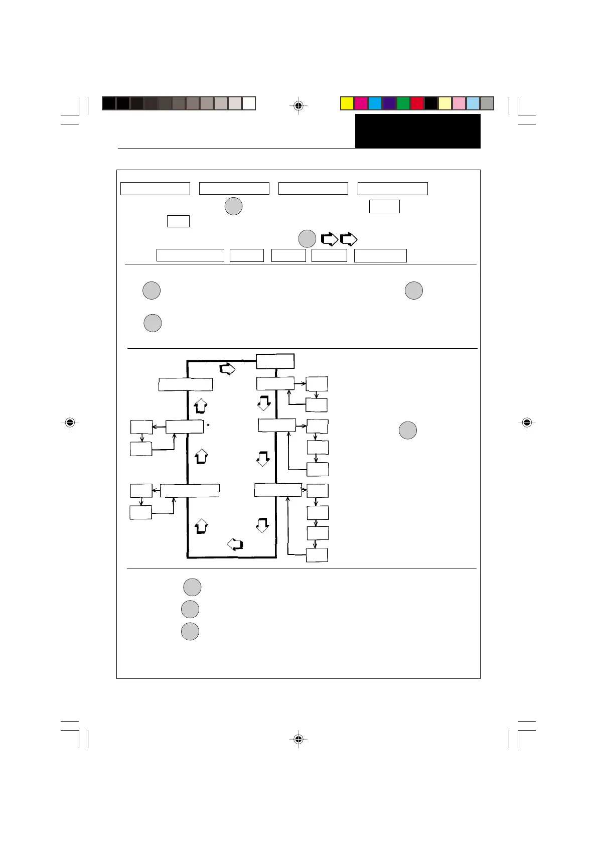 or accepts the submenu selection and returns to the beginning of the submenu selection.