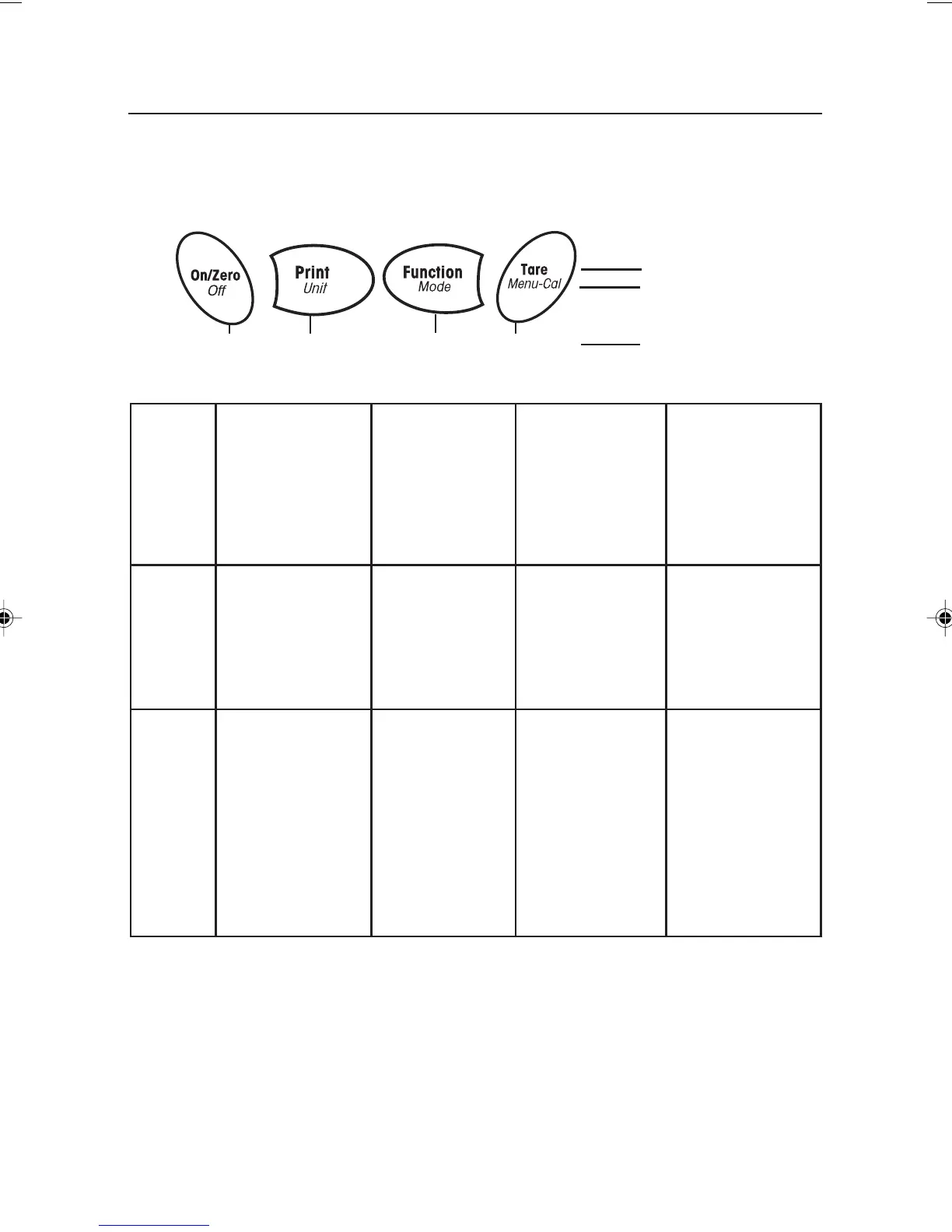 Four multifunction buttons are used to to operate the balance and navigate the menus. The
