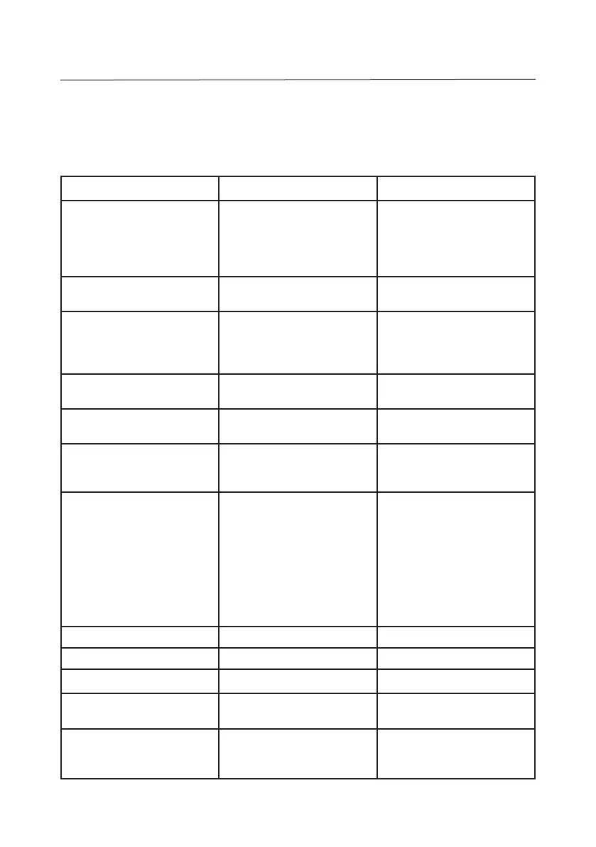 The following table lists common problems, possible causes and remedies. If the