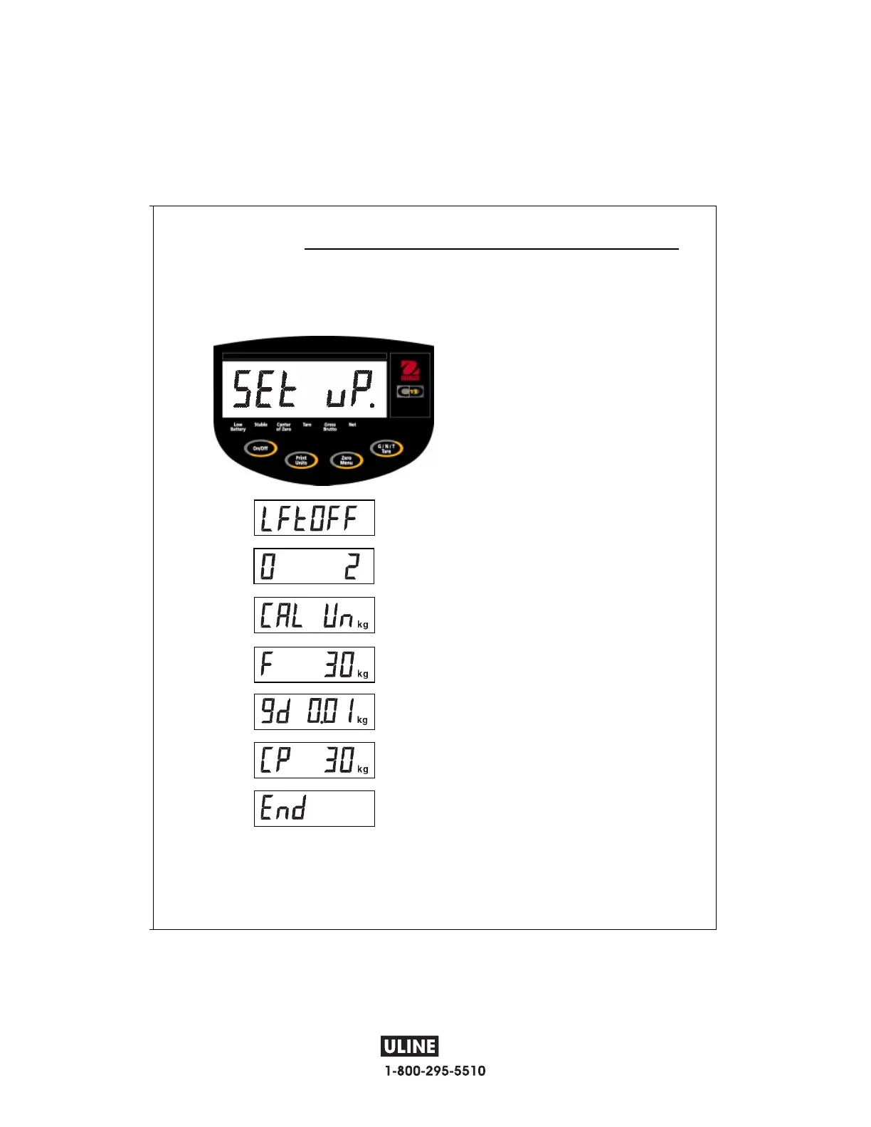 • Press Zero/Menu button, CAL Un kg is displayed.