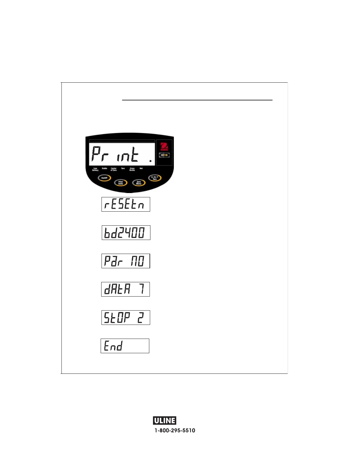 • Press Print/Units button, and select desired stop bit of