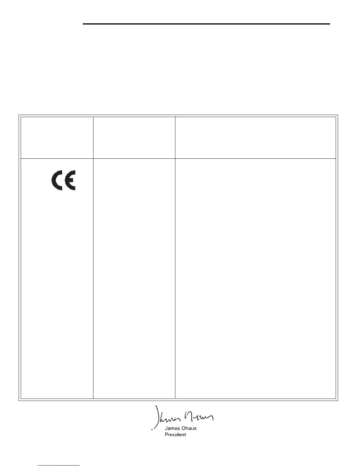 Déclaration de conformité Nous, Ohaus Corporation, déclarons sous notre seule responsabilité, que les types de instrument ci-dessous cité
