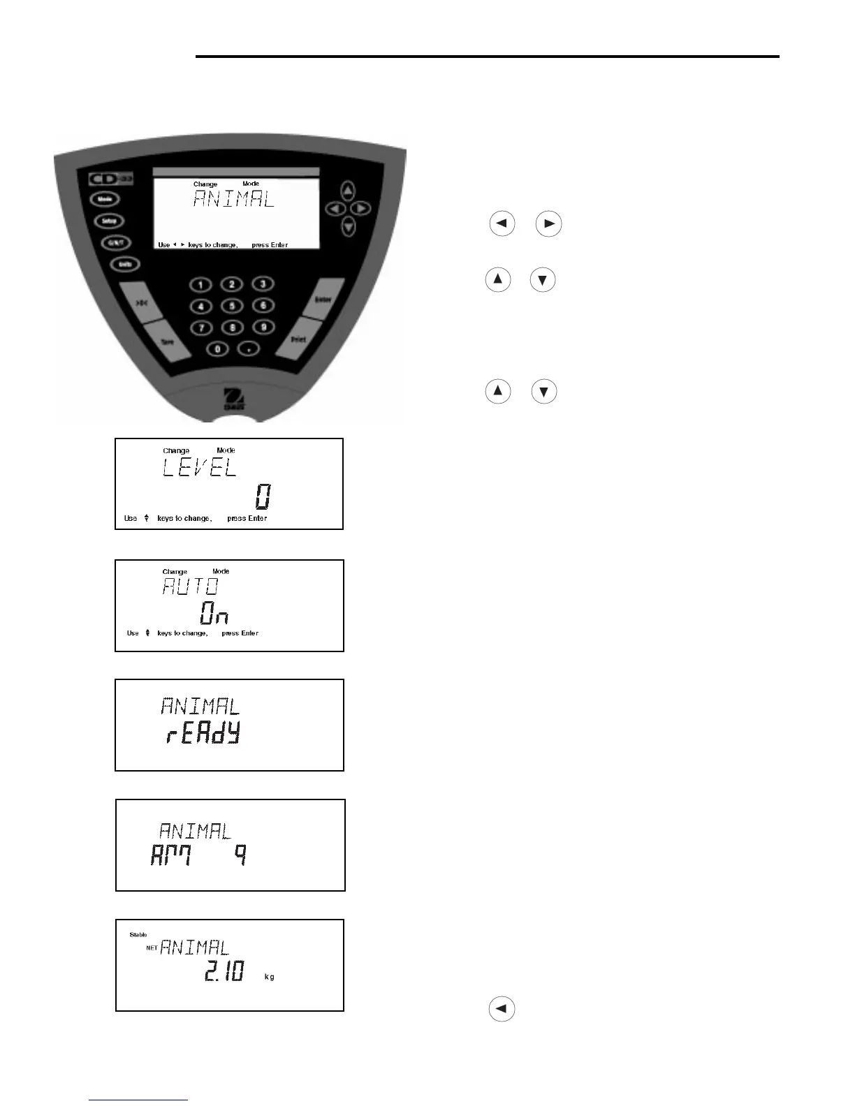 • Press or button to change animal weighing