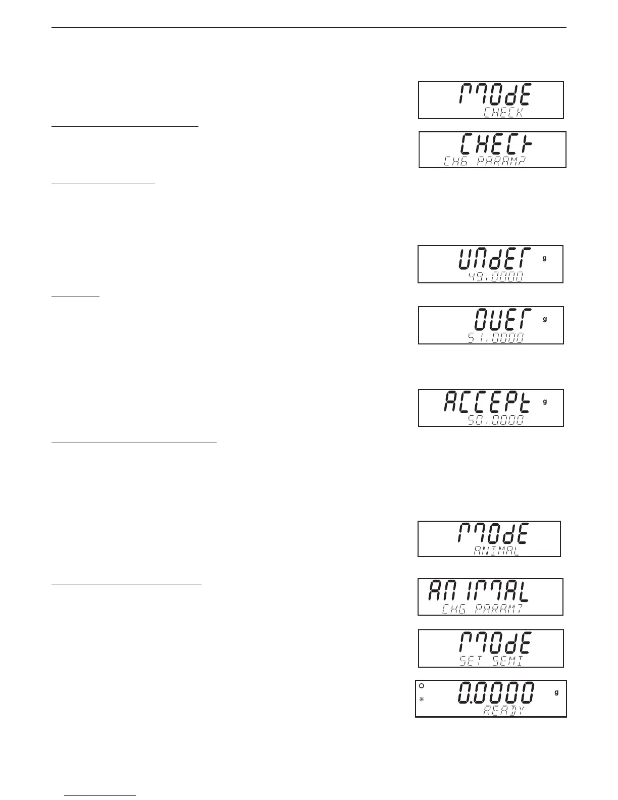 Place the sample on the pan. The UNDER/ACCEPT/OVER status is shown on the primary display