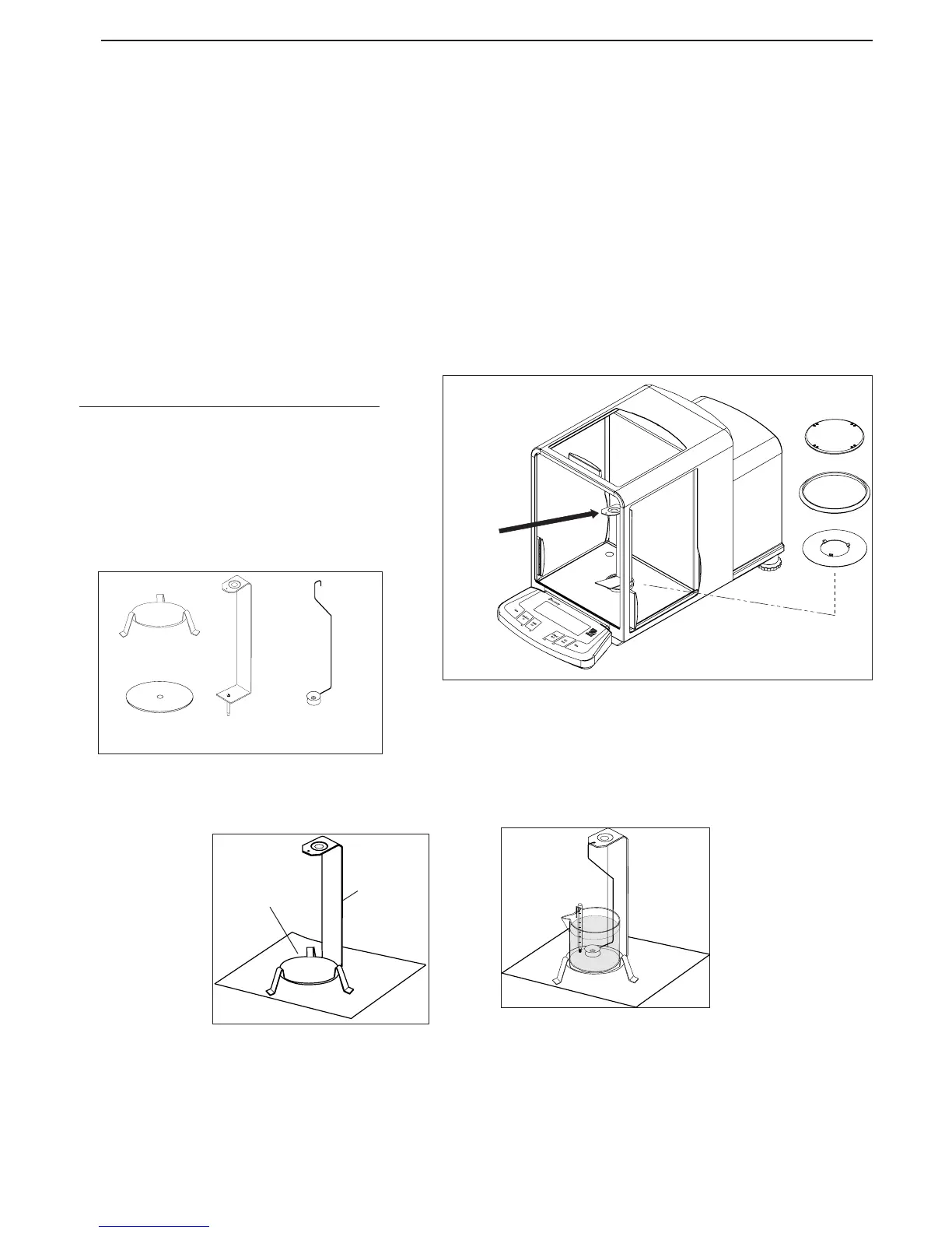 A Density Determination Kit Part Number 80850045 is designed to be used with Ohaus Discovery balances. Illustrations in this procedure refer