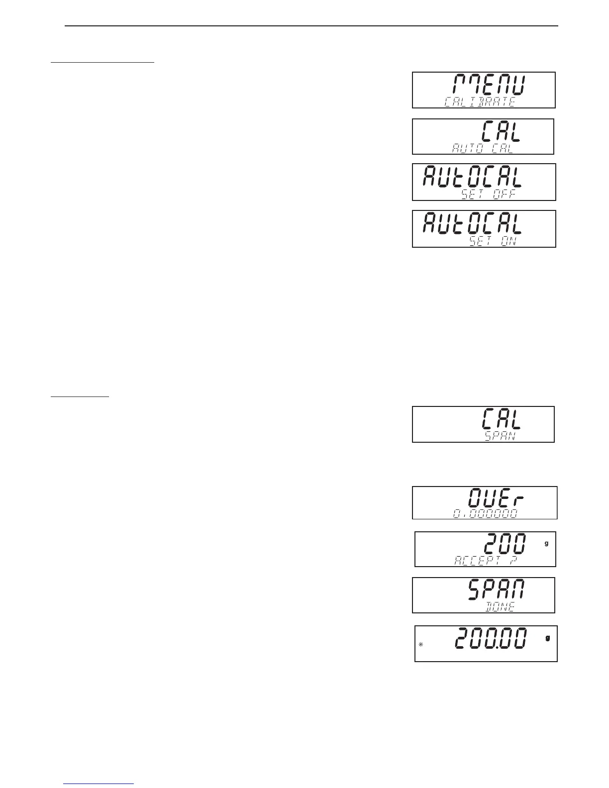 With Autocal set on, exit the Calibrate Menu. The balance may now be calibrated automatically
