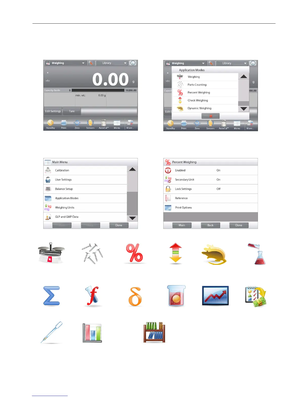 enable. Then touch Enabled in the setup menu for that application mode Percent Weighing in the example